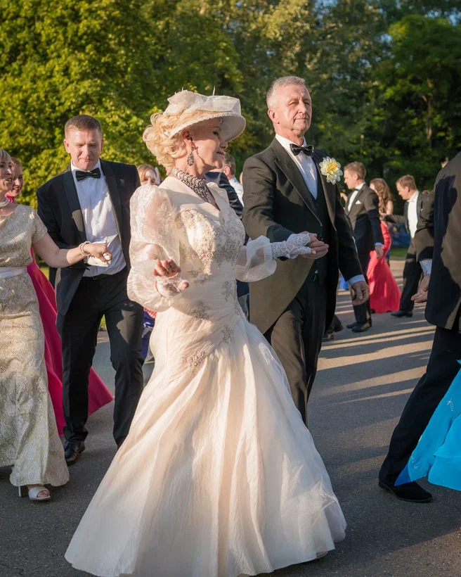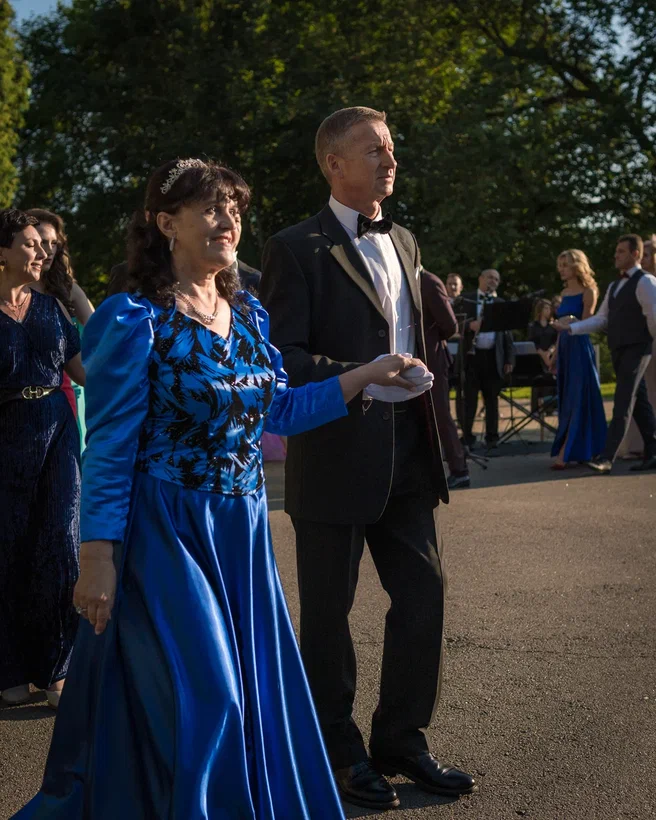 Нам очень нравятся здесь балы, особенно в летнее время. Очень приятно по парку пройтись, прогуляться.