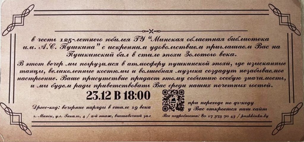 В Минской областной библиотеке имени А.С. Пушкина 23 декабря 2025 года состоялся традиционный ежегодный «Пушкинский бал», приуроченный к празднованию 125-летия Минской областной библиотеки